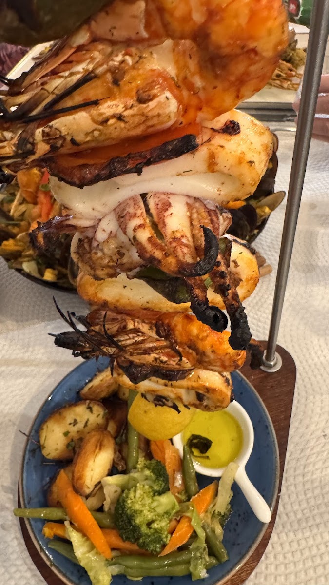 High quality menu that is also fresh. The mixed fish grill was fantastic to try cod, salmon, prawn and local fish - durado. The homemade potatoes were delicious. Other tables ordered the prawn skewer which looked amazing and just as generous in size.